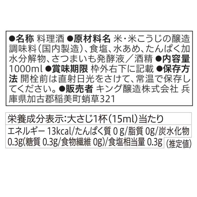 清酒の調味料としての働きを追求し、コクやうまみ効果を高めた料理酒です。