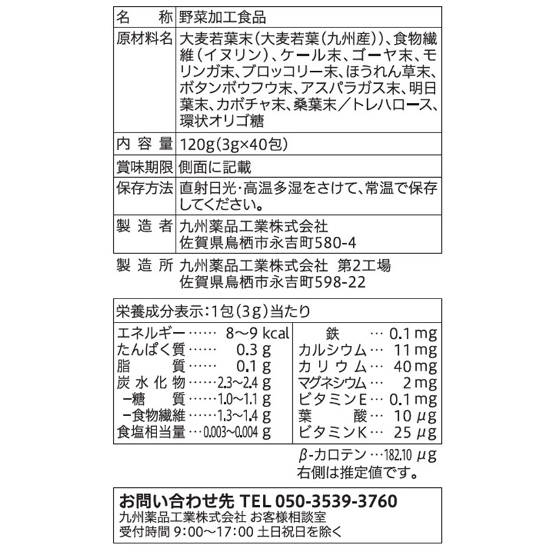 11種の九州産野菜を使用した飲みやすい青汁