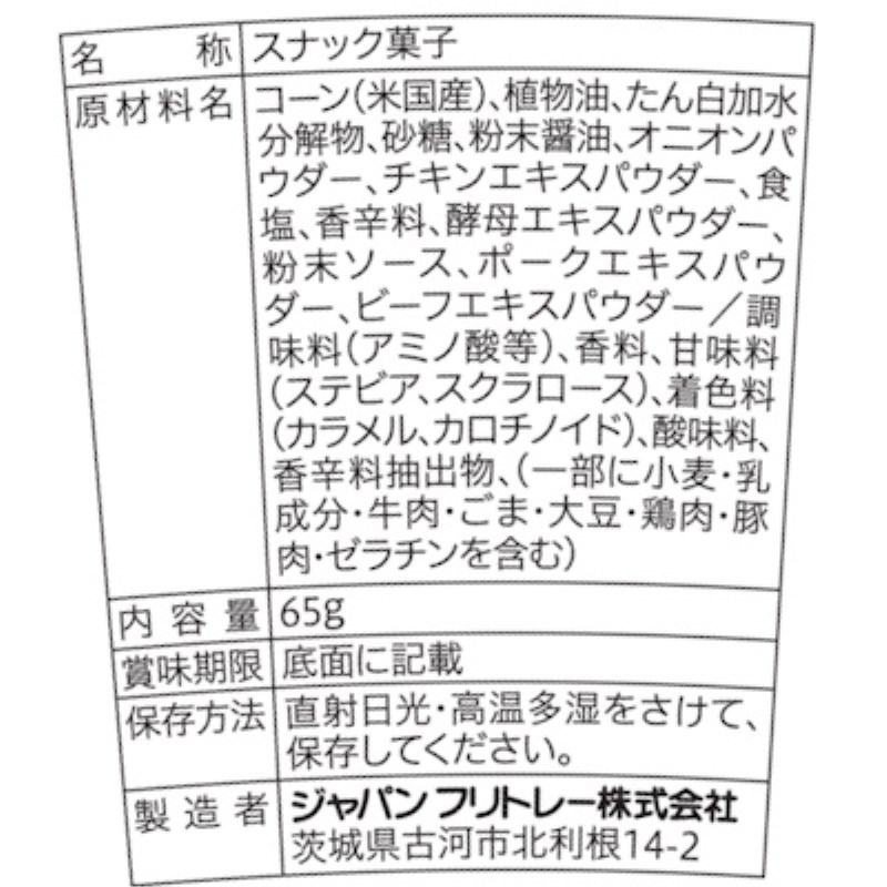 カリカリ食感の濃厚なコンソメ味のツイスト状コーンスナック。うま味を利かせた、濃厚なコンソメ味。
