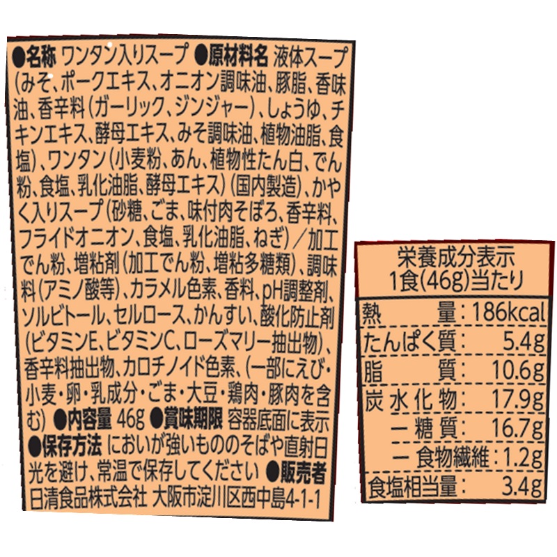 炒めた調理感のあるニンニク・生姜などの香味野菜の香りを効かせた、濃厚味噌ワンタンスープ。