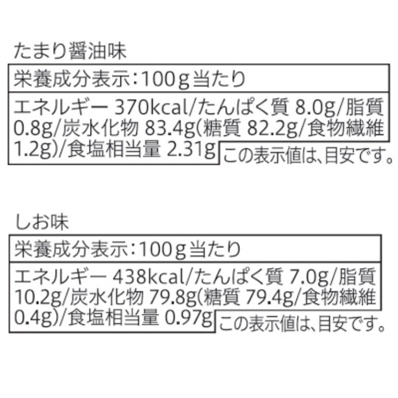 濃厚な味付けと米の香ばしい割れせんべい。醤油、塩の2種類をミックス。