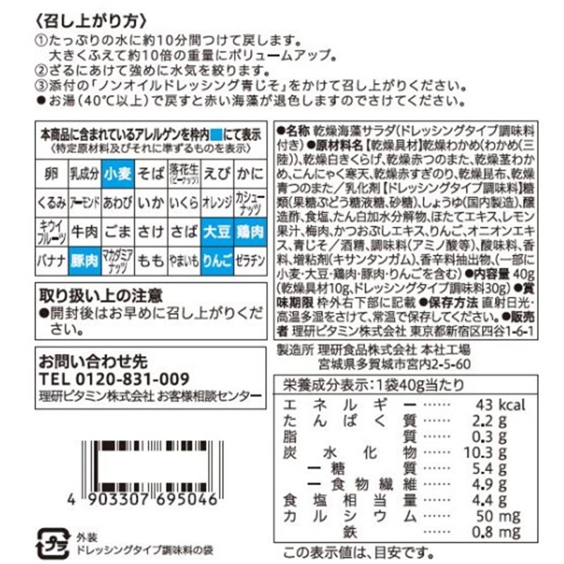 三陸産わかめと7種の具材が入った海藻サラダです。