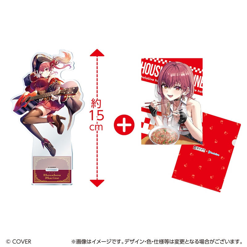 2種類両方楽しめるうえに、アクリルスタンドとA4クリアファイルが付いた宝鐘マリン特別セット!