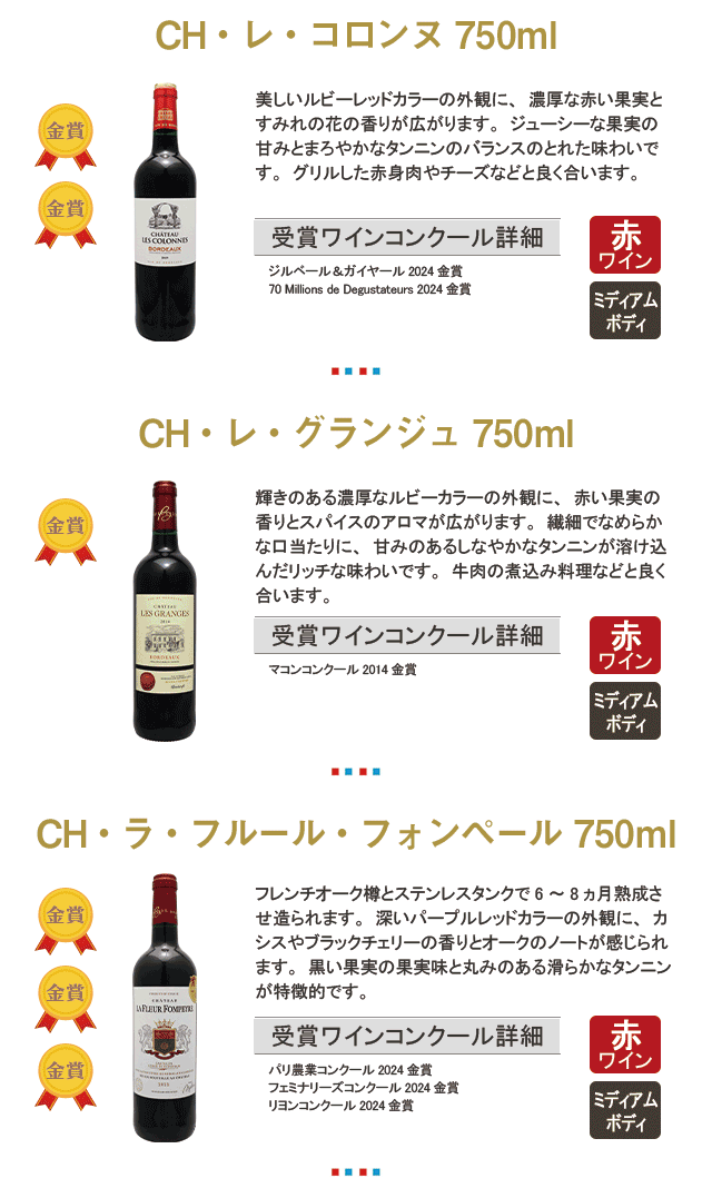 数々の賞を受賞したボルドーワインが6本セットになりました。