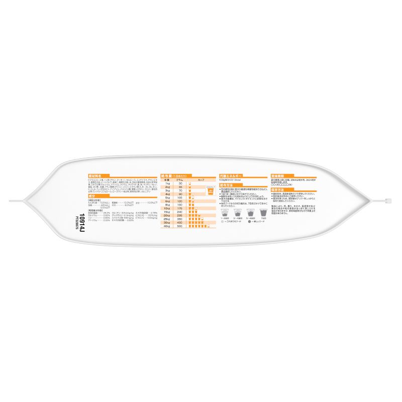 亜麻仁、植物性油脂、米、加水分解豚軟骨、加水分解甲殻類、ミネラル類(カルシウム、ナトリウム、カリウム、クロライド、