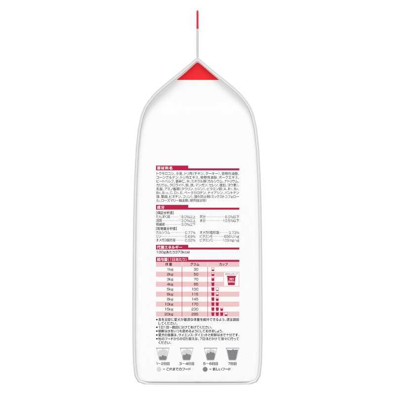 - トウモロコシ、小麦、トリ肉(チキン、ターキー)、動物性油脂、コーングルテン、トリ肉エキス、植物性油脂、ポークエキス、