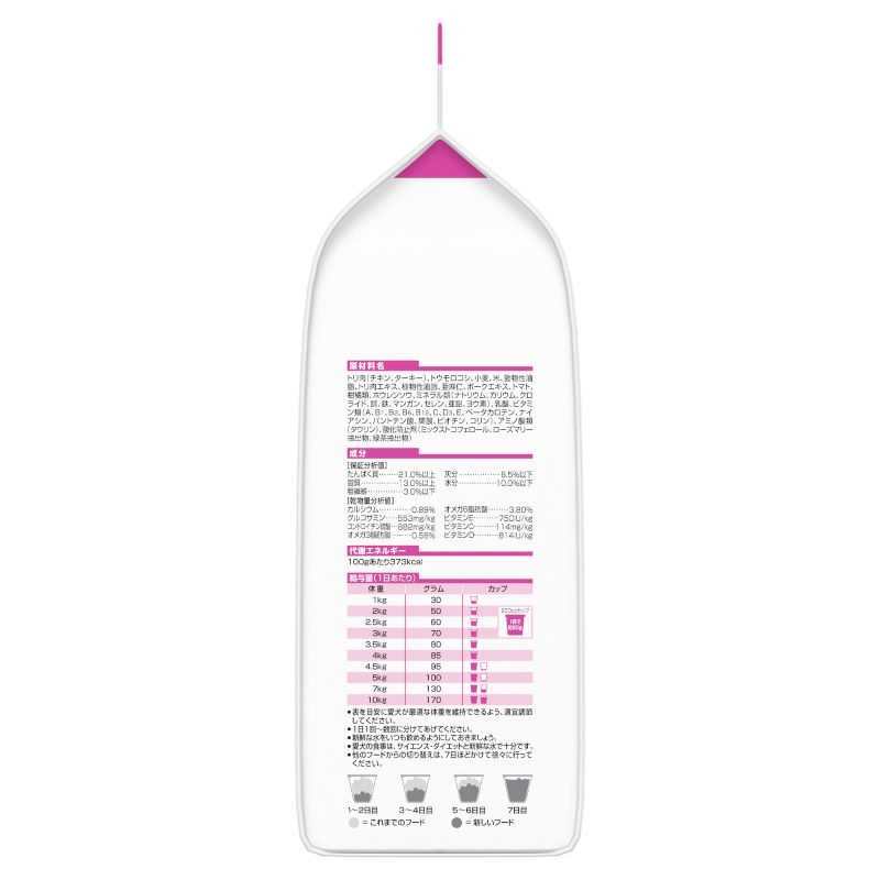 こちらはペットフードでございます。 小型犬の健康を維持し、成犬期の元気な体をサポートする栄養バランスです。ビタミンE&C