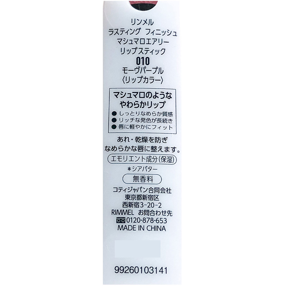リンメル ラスティングフィニッシュ マシュマロエアリーリップスティック モーヴパープル 010