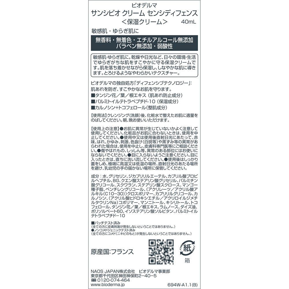 ビオデルマ サンシビオ クリーム センシディフェンス 40mL