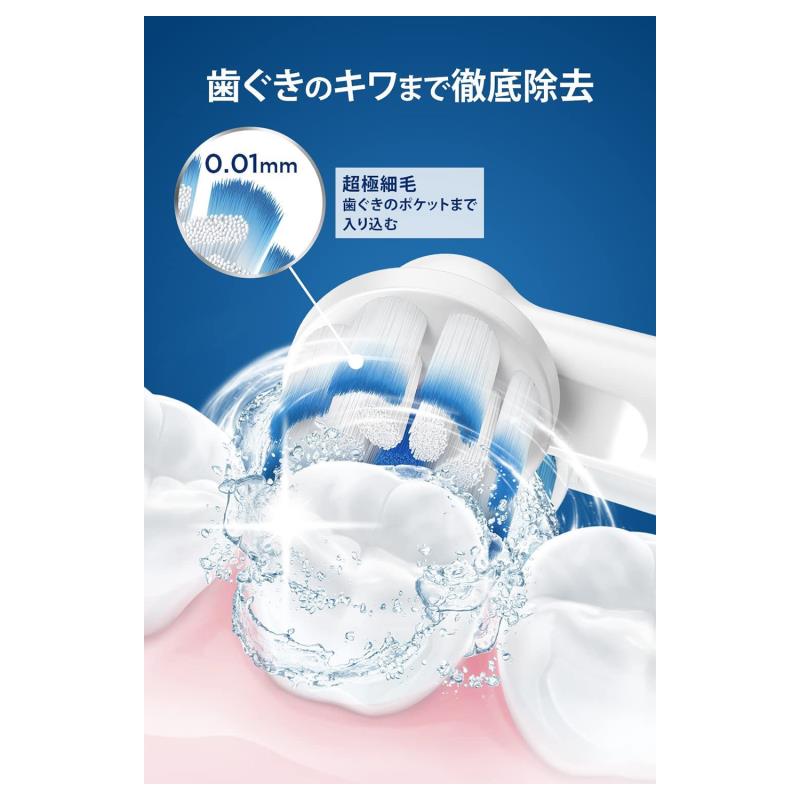 ●端が丸く加工された極細の毛先で、歯ぐきにも優しく、届きにくい場所もしっかり磨き上げます。