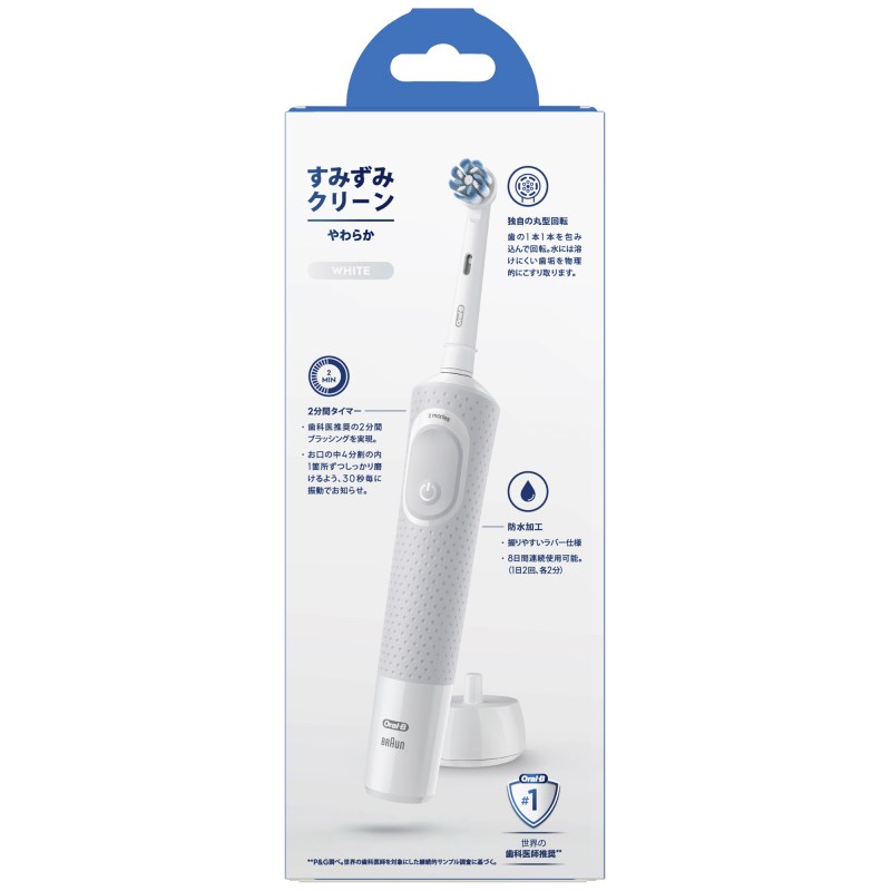 - 2分間タイマー。歯科医推奨の2分間ブラッシングを実現。