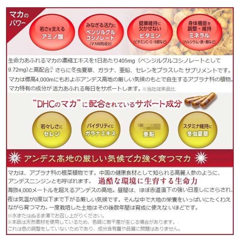 生命力あふれるマカの濃縮エキス末を1日あたり405mg(ベンジルグルコシノレートとして9.72mg)と高配合。