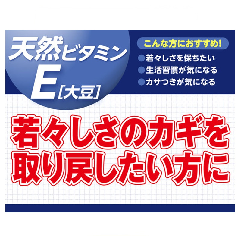 ビタミンEの中でもっとも活性の高い天然d‐α‐トコフェロールを一日摂取目安量あたり301.5mg配合。