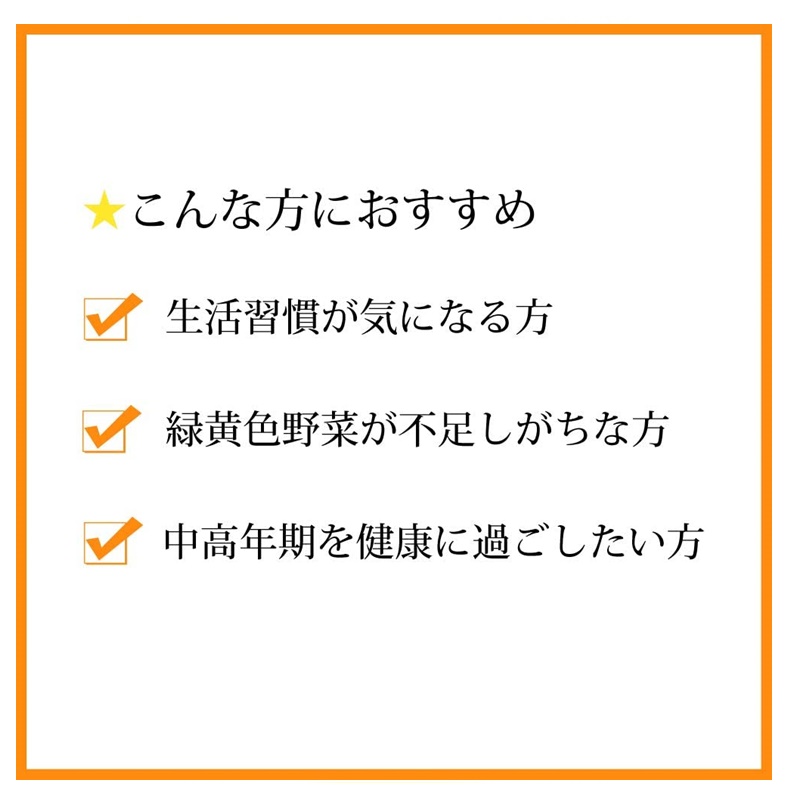 カサカサが気になる方、冷え・コリが気になる方、緑黄色野菜が不足しがちな方、
