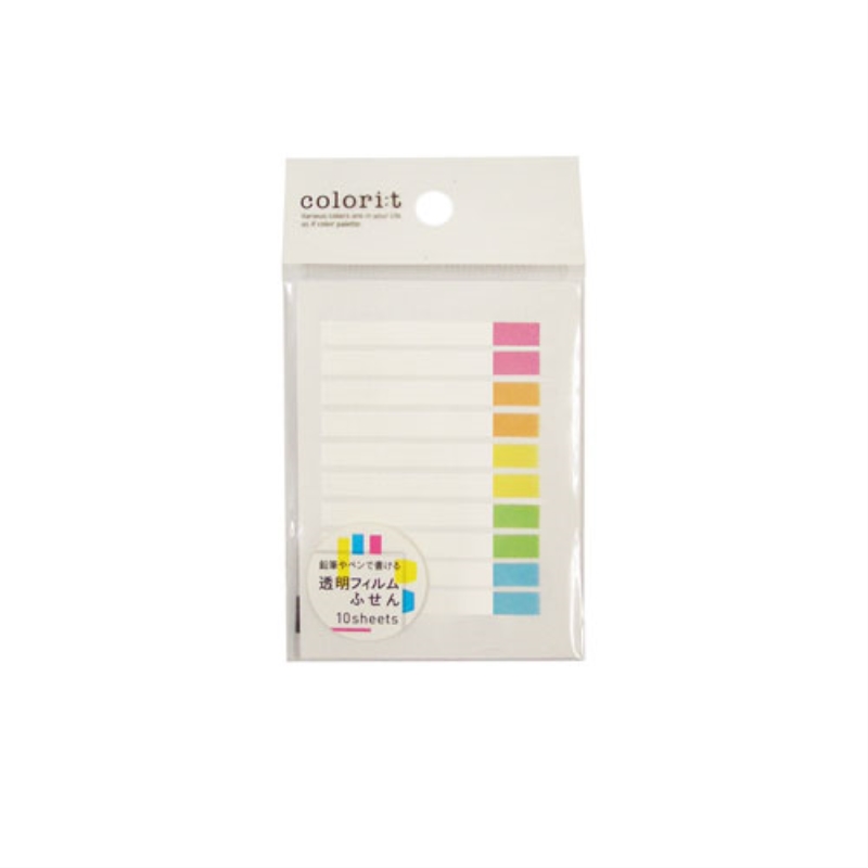 ハリのある透明フィルムを使用したふせん。