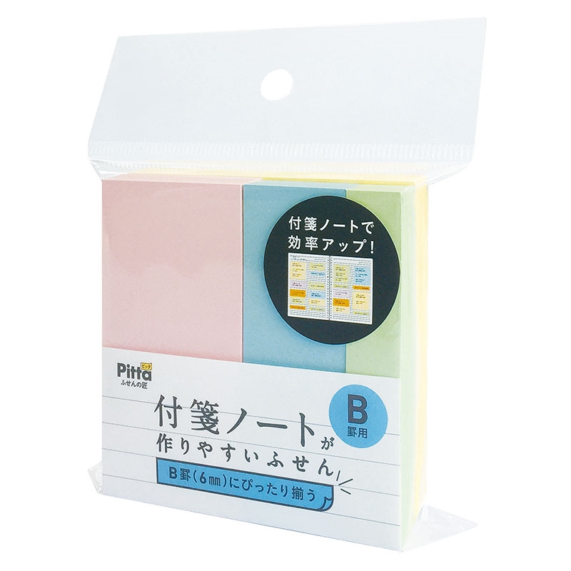 B罫(6mm幅)のノートやルーズリーフに、ぴったり揃えて貼りやすいサイズのふせん。
