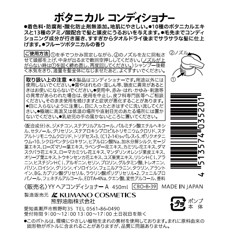 10種のボタニカルエキスと13種のアミノ酸配合で髪と頭皮にうるおいを与えます。
