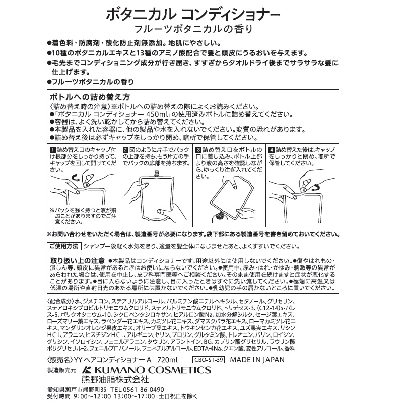 10種のボタニカルエキスと13種のアミノ酸配合で髪と頭皮にうるおいを与えます。