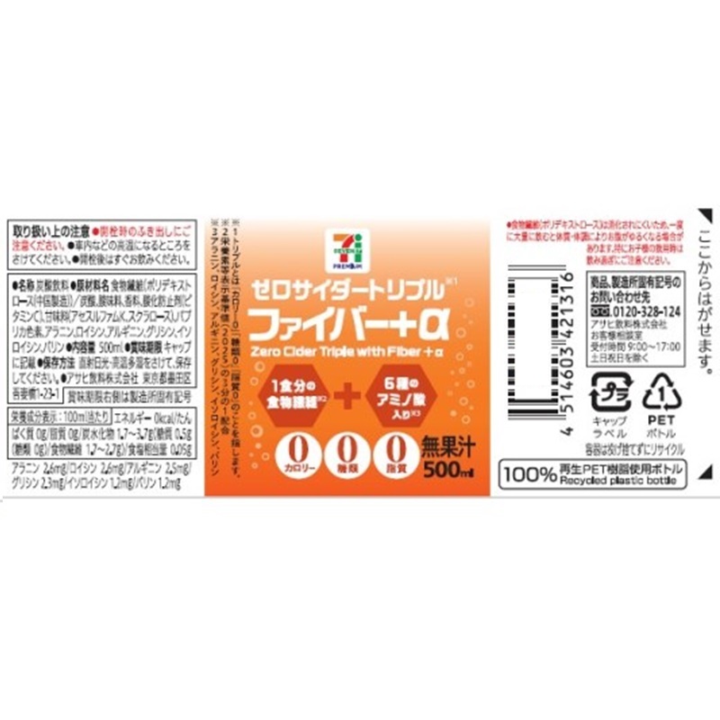 グリシン、イソロイシン、バリン)を配合した1食分の食物繊維が取れる柑橘味の炭酸飲料。