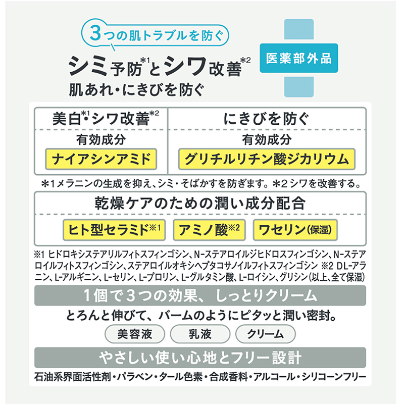 美白*1・シワ改善*2:有効成分ナイアシンアミド