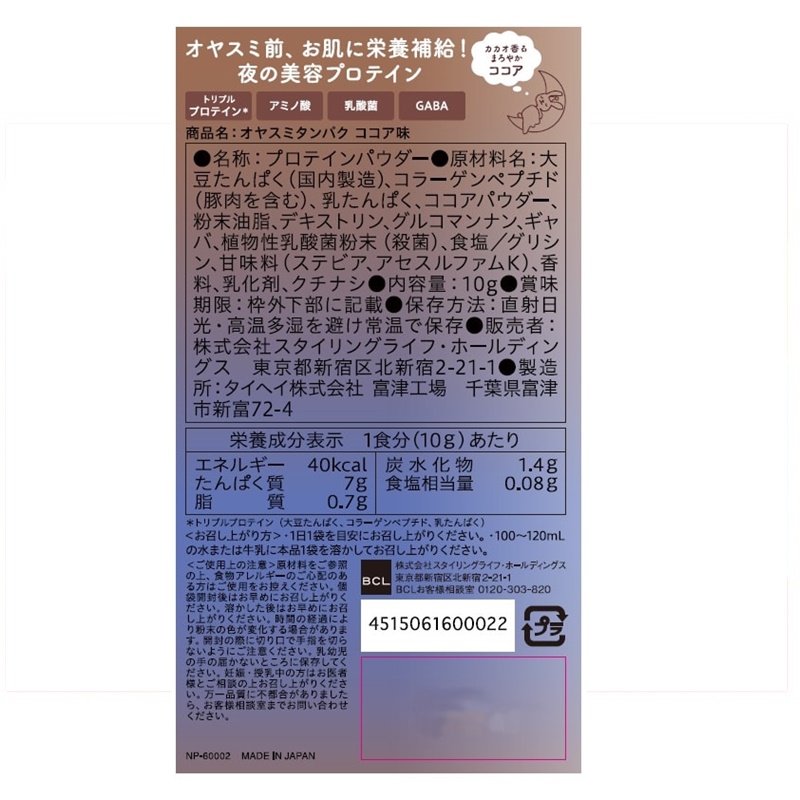 オヤスミ前に飲む、夜の美容プロテイン。