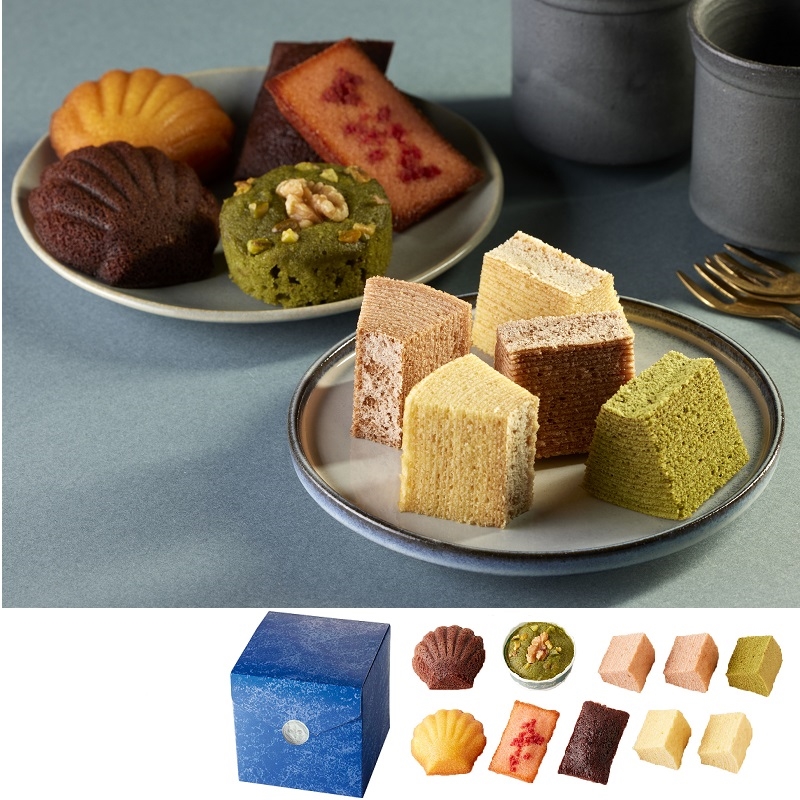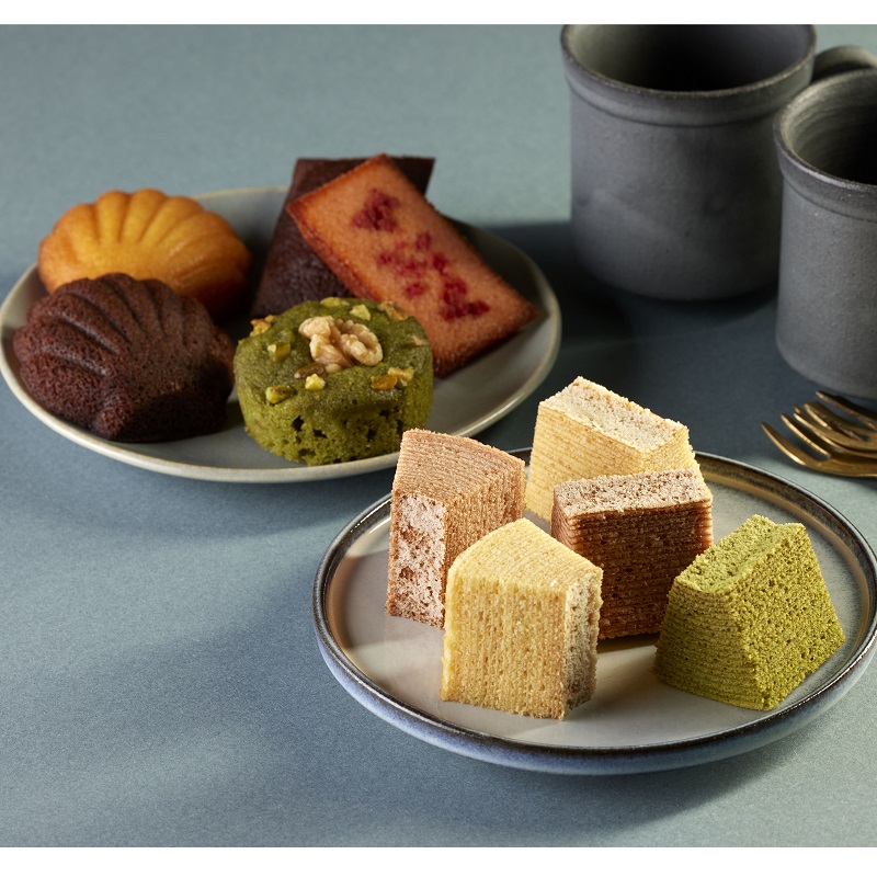 - プチバウムクーヘンプレーン×2、 プチバウムクーヘンあまおう苺×2、 プチバウムクーヘン宇治抹茶×1、 マドレーヌプレー