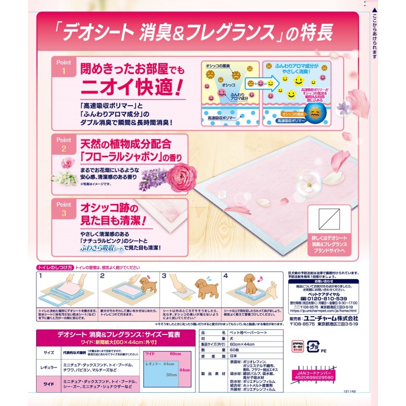 - 表面材:ポリオレフィン、ポリエステル不織布、香料、フラワー抽出エキス