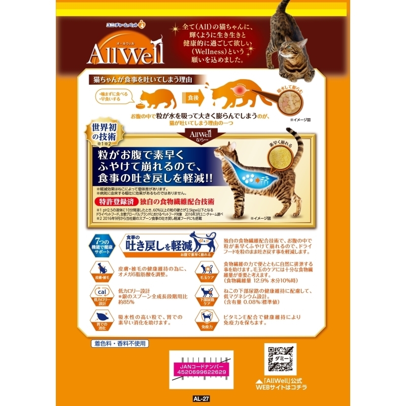 食事の吐き戻し軽減を中心とした7つの機能で健康サポート。