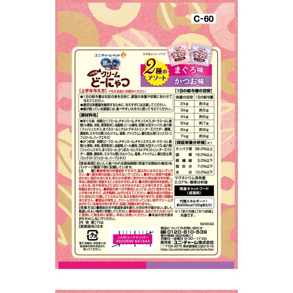 ・まぐろ&かつお味の2種の味が楽しめるアソートタイプのおやつです。