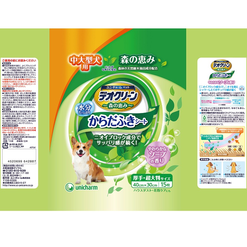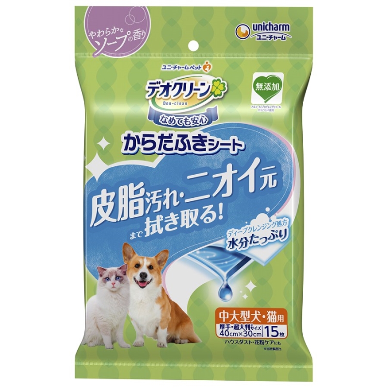 デオクリーン からだふきシート 中大型犬用 やわらかなソープの香り 15枚