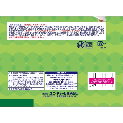 ペットがなめても安心。ノンアルコール除菌水分たっぷりのペット用ウェットティッシュ。