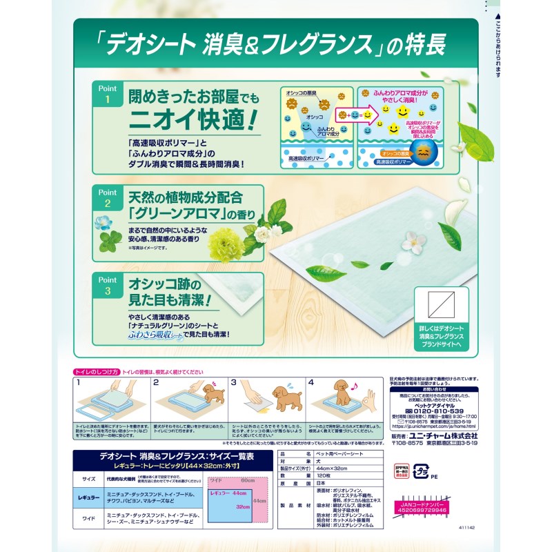 「高分子吸水ポリマー」と「ふんわりアロマ成分」のダブル消臭で瞬間&長時間消臭