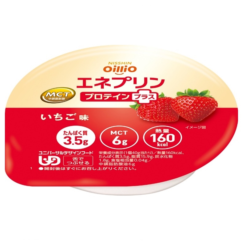 - 食用油脂(菜種油、MCT(中鎖脂肪酸油))(国内製造)、乳たんぱく、コラーゲンペプチド(ゼラチン)、砂糖、いちご果汁、