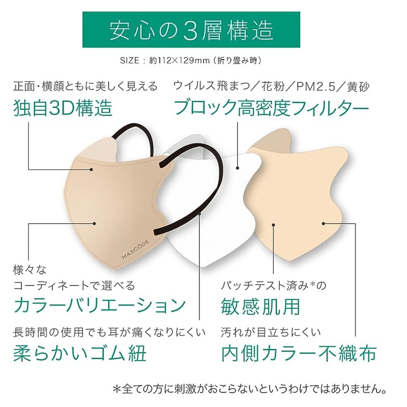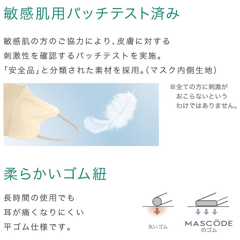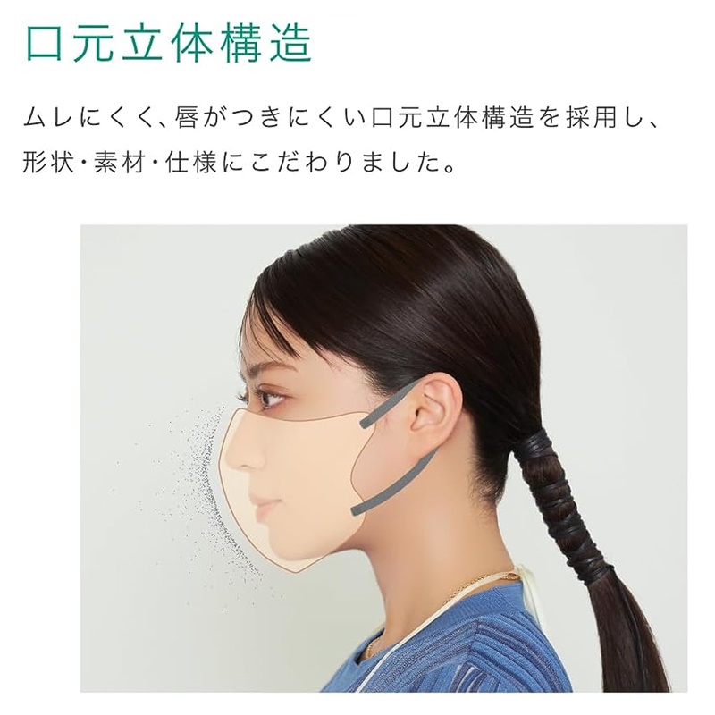 ムレにくく、唇がつきにくい口元立体構造を採用し、形状・素材・仕様にこだわりました。