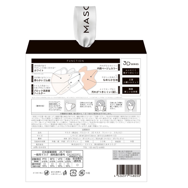 耳が痛くなりにくい柔らかいゴム紐。