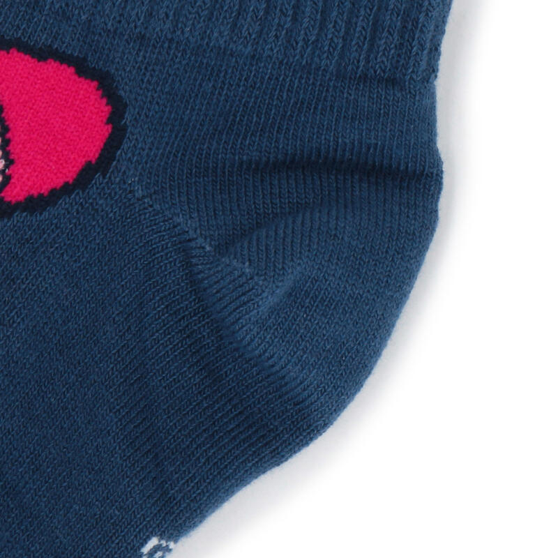 足首部分のリブ切り替え、かかとの立体設計でフィット感よく短め丈ながら脱げにくいのもうれしいポイントです。