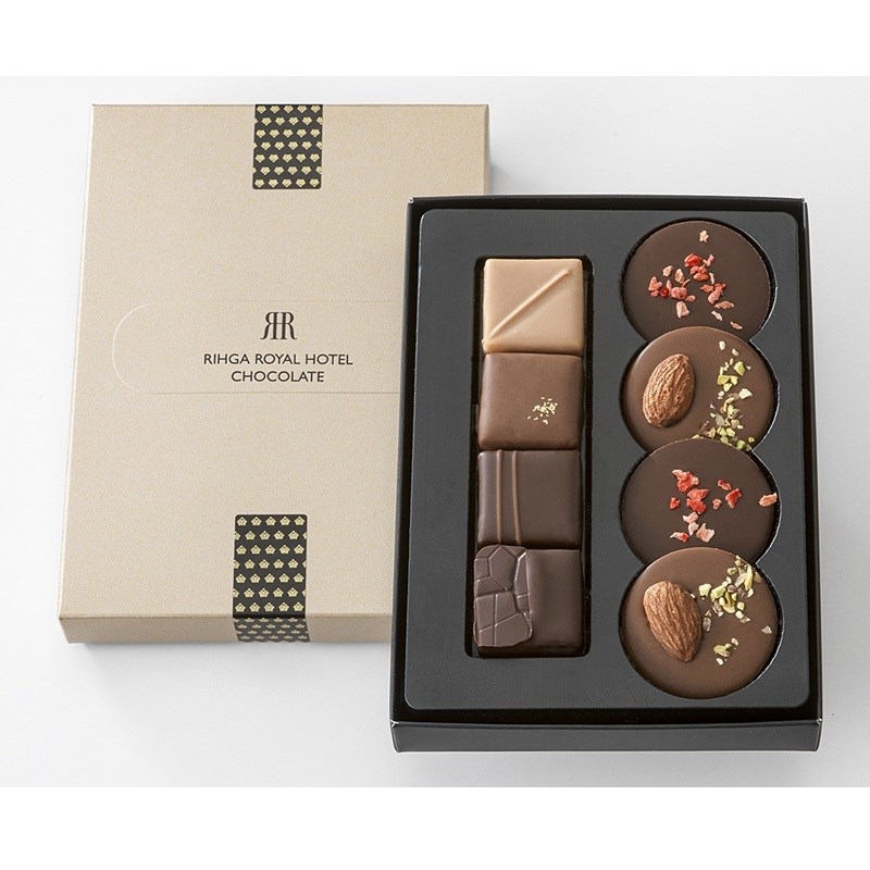 ドライ苺やナッツをあしらった2種のパレショコラと、4種の多彩なボンボンショコラのアソート。