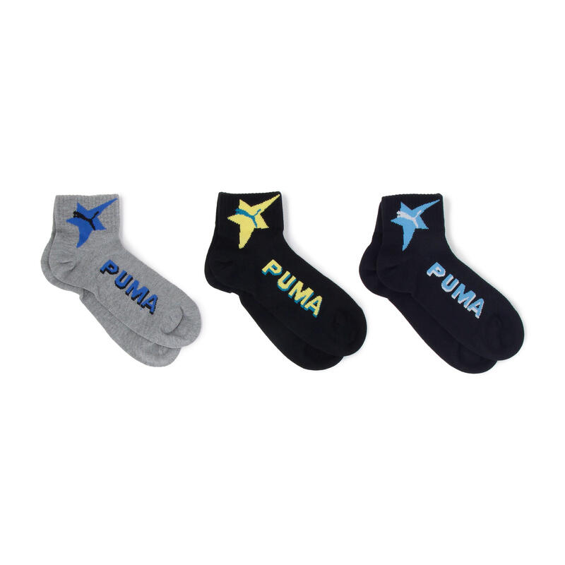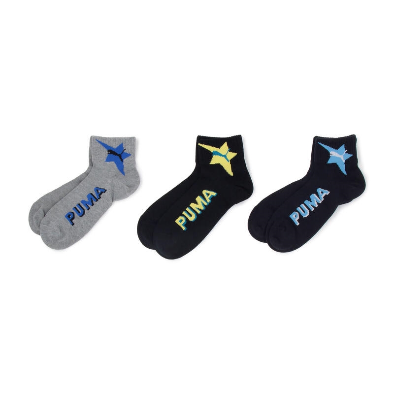 洗い替えにうれしい3足組、それぞれカラーの異なるロゴをデザインしました。