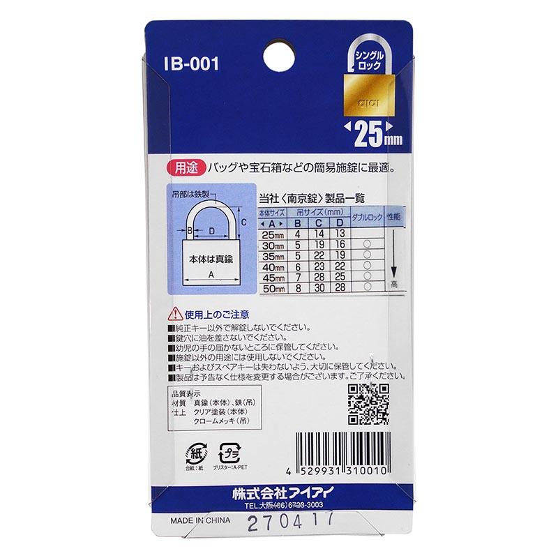 弦部分が丈夫な南京錠 小さくてもしっかり防犯