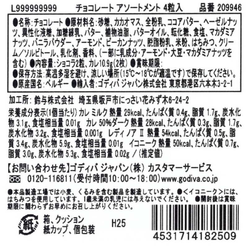 ゴディバ チョコレートアソート 4粒入