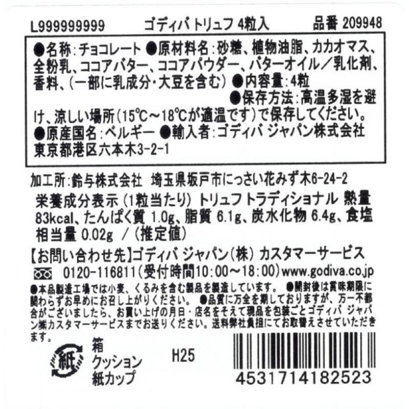 ゴディバ トリュフ アソート 4粒入