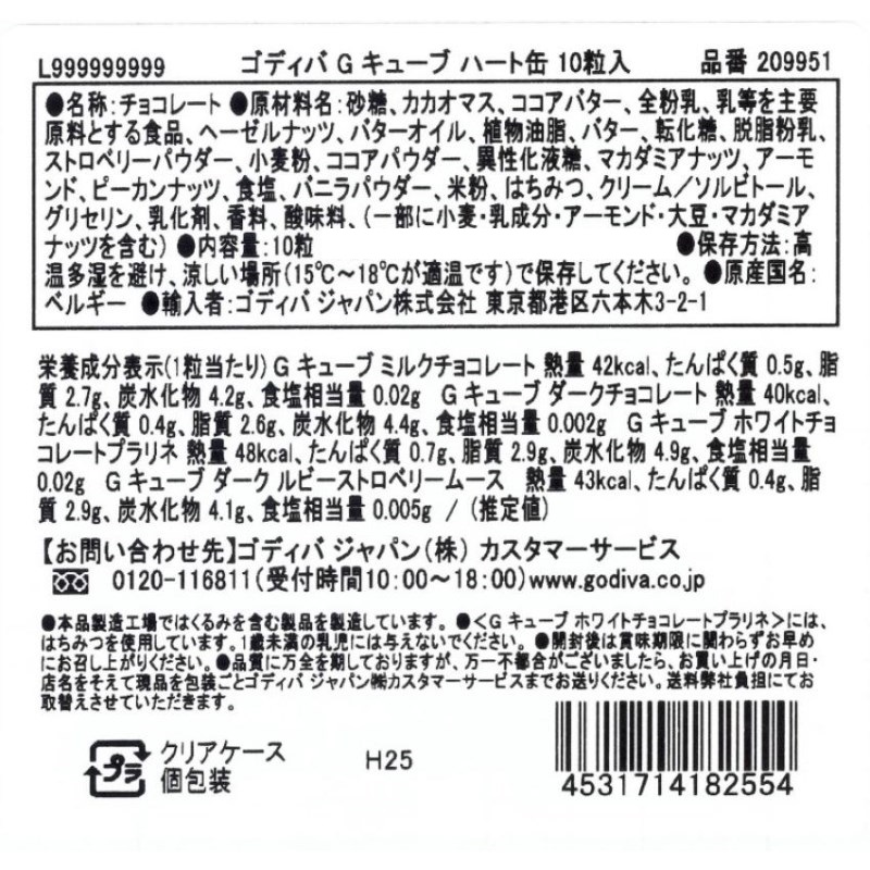 ゴディバ Gキューブ ハート缶 10粒入