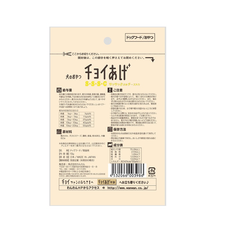 わんわん チョイあげ サクサクささみチーズ入り 10g