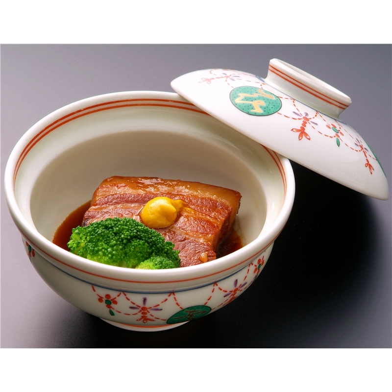 良質な豚の皮付三枚肉を割烹職人の匠の技と秘伝の角煮タレでじっくりと煮込んだ「角煮」と、この角煮をふわふわの生地に挟んだ