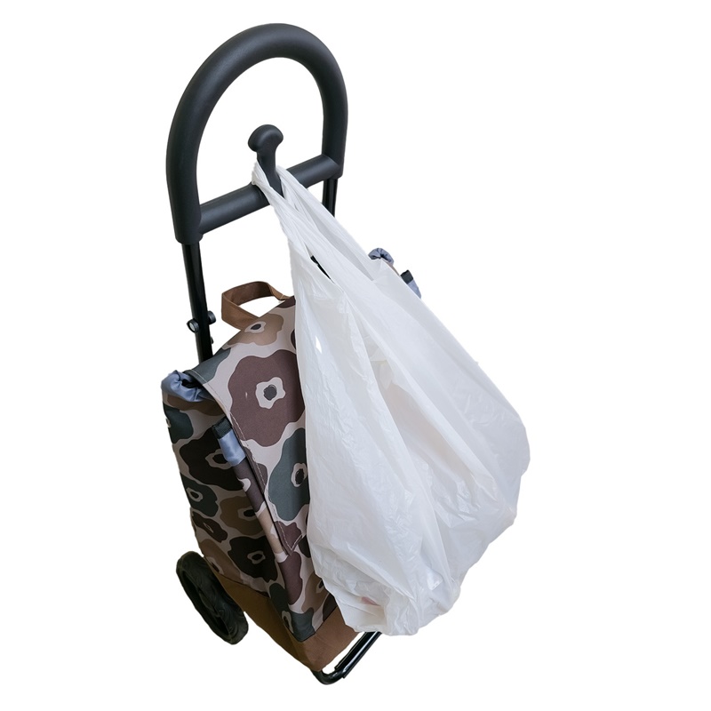 満開の花で気分もあがるシンプルかつ大胆なデザインの花柄ショッピングカート。