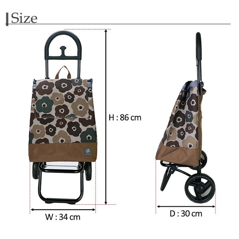 満開の花で気分もあがるシンプルかつ大胆なデザインの花柄ショッピングカート。