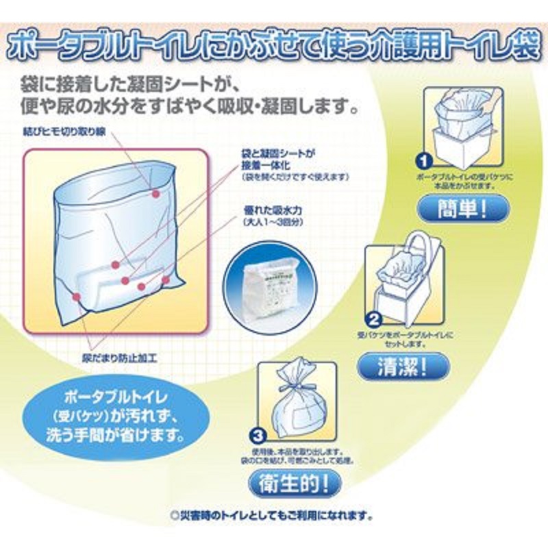 非常時や防災用の簡易トイレとしても使用でき、抗菌ポリマー凝固シートが便や尿の水分をすばやく吸収・凝固します。