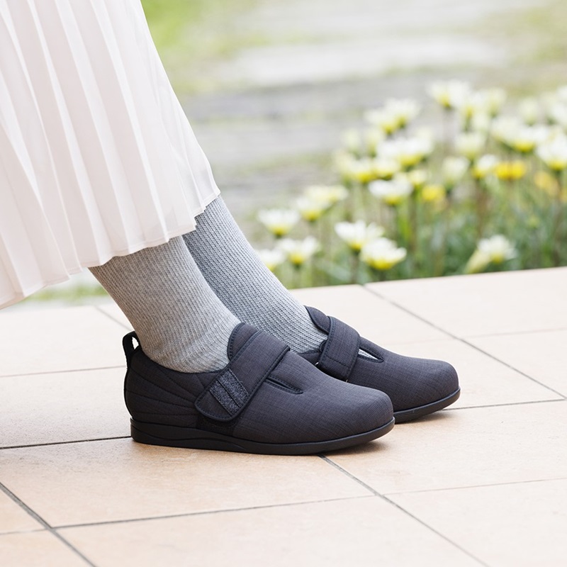 後甲部は流れるようなステッチを表生地に入れ、女性心をくすぐるデザインへ。