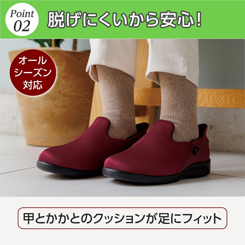 屈まなくても履ける、オールシーズン対応で脱ぎ履きやすい設計。