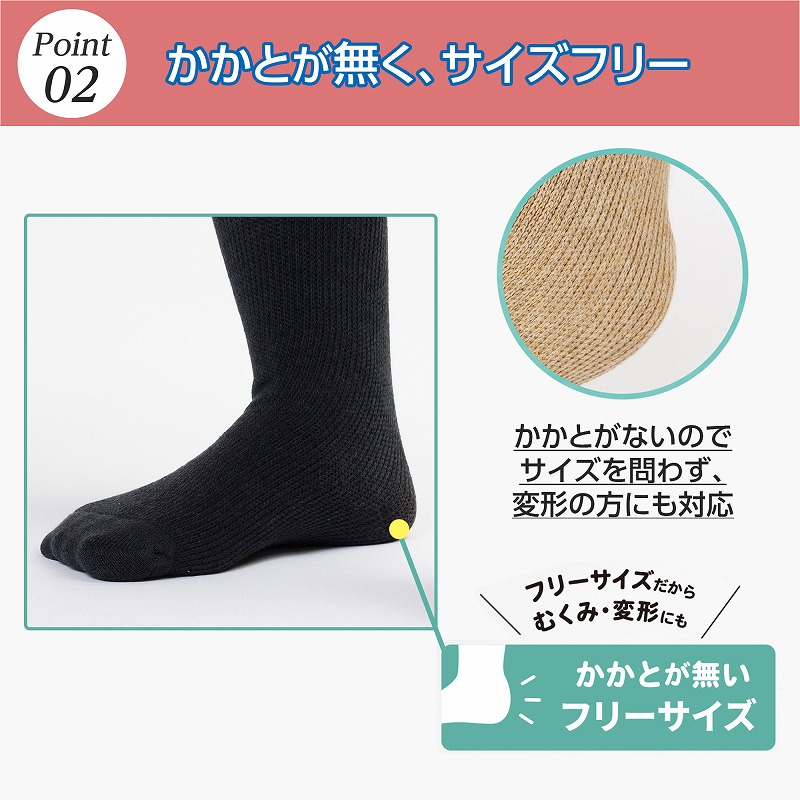 優しく伸びて締め付けない、フリーサイズで足の状態にフィットするから安心。